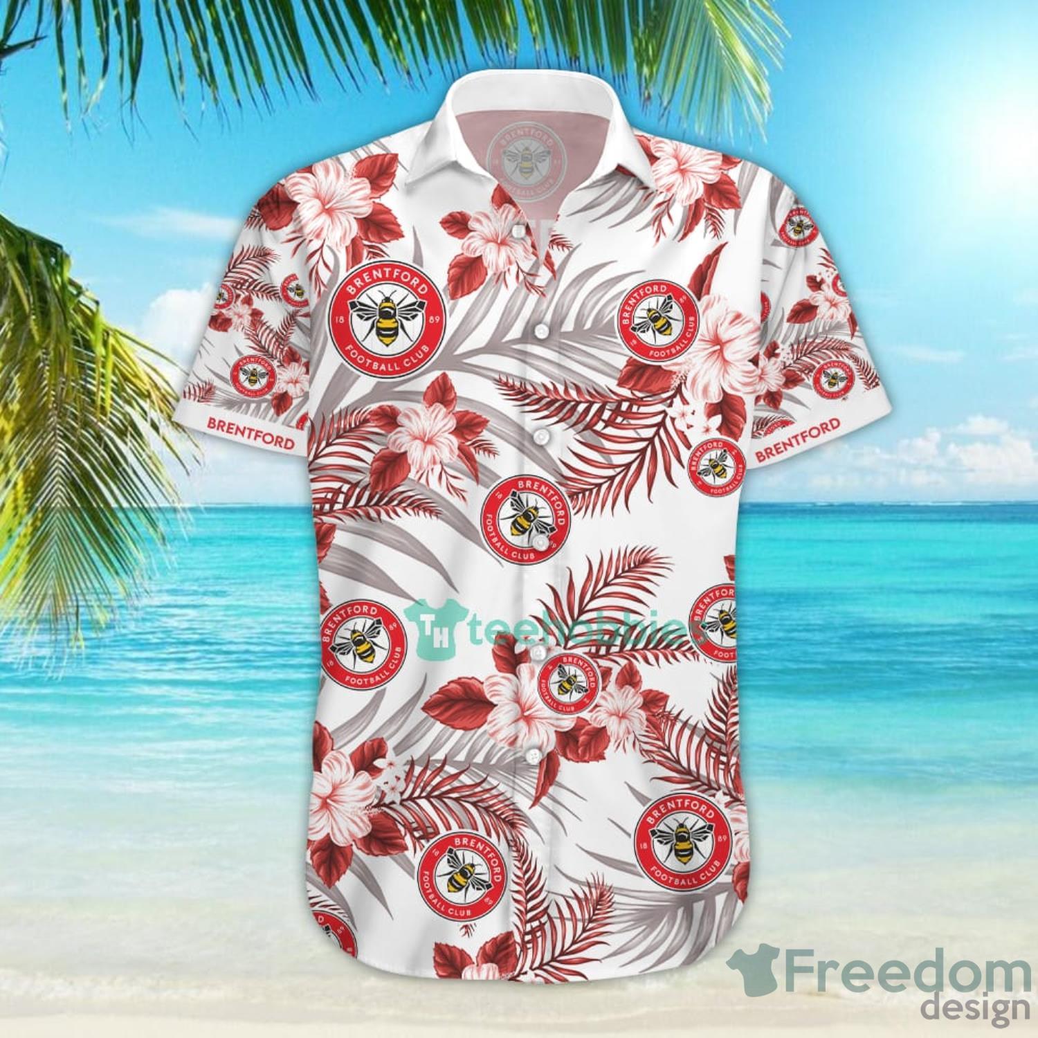 Introducing the Brentford Football Club Hawaiian Shirt And Short For Fans! This is the perfect way to show your support for your favourite team while also keeping cool and comfortable in the summer heat. The shirt is made from a light and airy fabric that will help you stay cool, even on the hottest days. The shorts are also made from a lightweight fabric that will allow you to move and breathe easily. The shirt and shorts are both covered in a bright and colourful print that is sure to stand out. The shirt also features the Brentford Football Club crest on the chest, so you can show your pride in your team. The shirt and shorts are both machine washable, so you can easily keep them clean. The shirt and shorts are available in sizes S-XXL. Order your Brentford Football Club Hawaiian Shirt And Short For Fans today and show your support for your team!