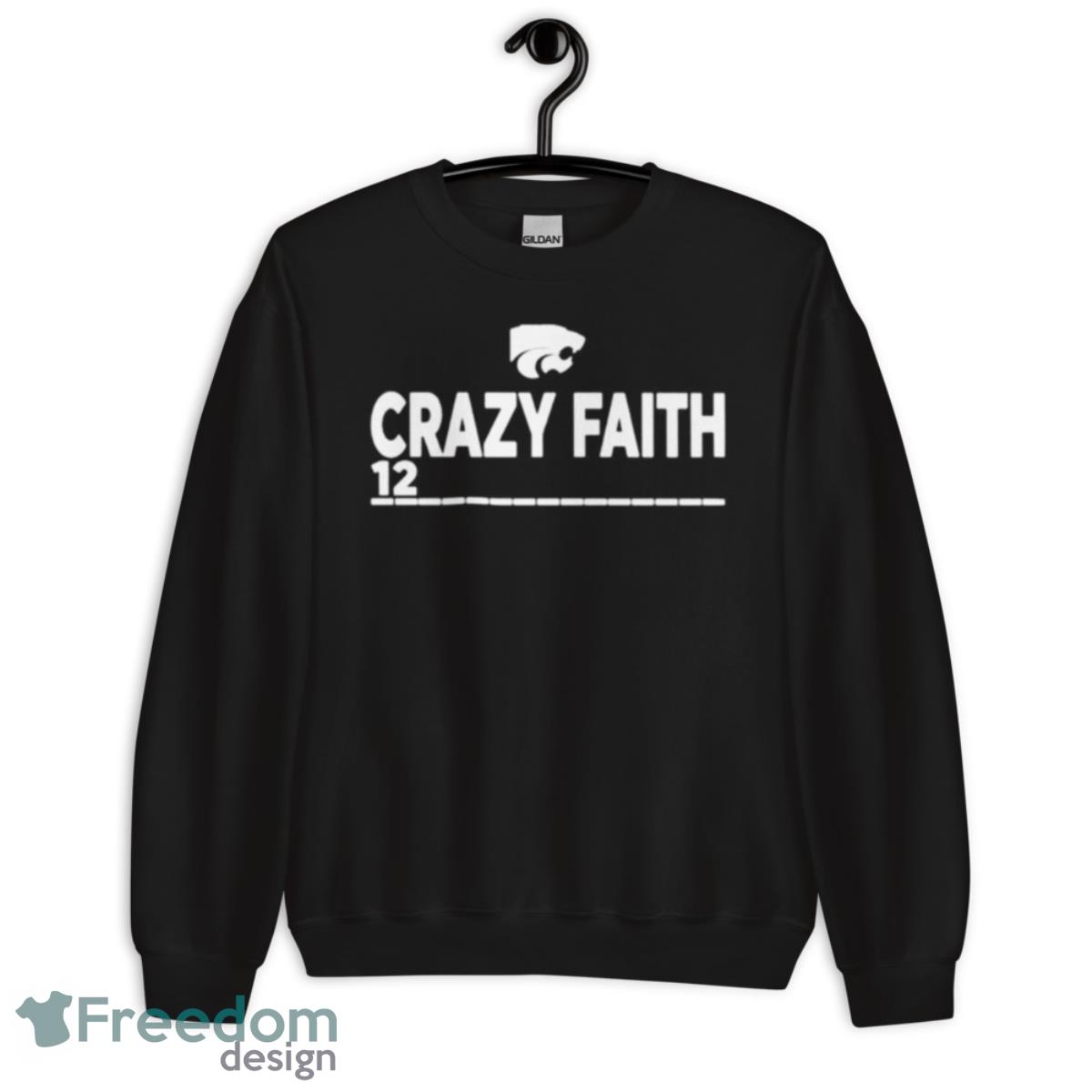 The design of the Crazy Faith 12 Kansas State Wildcats Basketball Shirt is truly one-of-a-kind. The front of the shirt features the number “12” in large, bold letters, along with the Kansas State Wildcats basketball team logo. The back of the shirt features a unique design that combines the Kansas State Wildcats logo with the words “Crazy Faith” in a bold and eye-catching font.