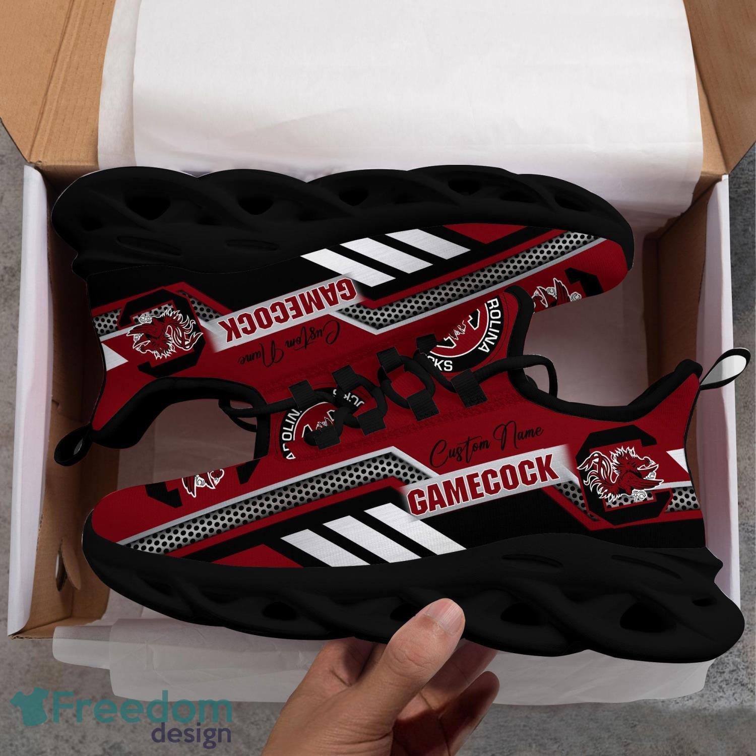 Elevate your game day style with our Custom Name South Carolina Gamecocks NCAA Max Soul Shoes Sneakers! These personalized shoes are a must-have for any die-hard fan looking to show off their team spirit in a unique and stylish way. With a sleek design and comfortable fit, these shoes are perfect for cheering on the Gamecocks from the stands or hitting the streets in style. Stand out from the crowd and represent your favorite team with these one-of-a-kind personalized shoes. Order yours today and step up your fan gear game!