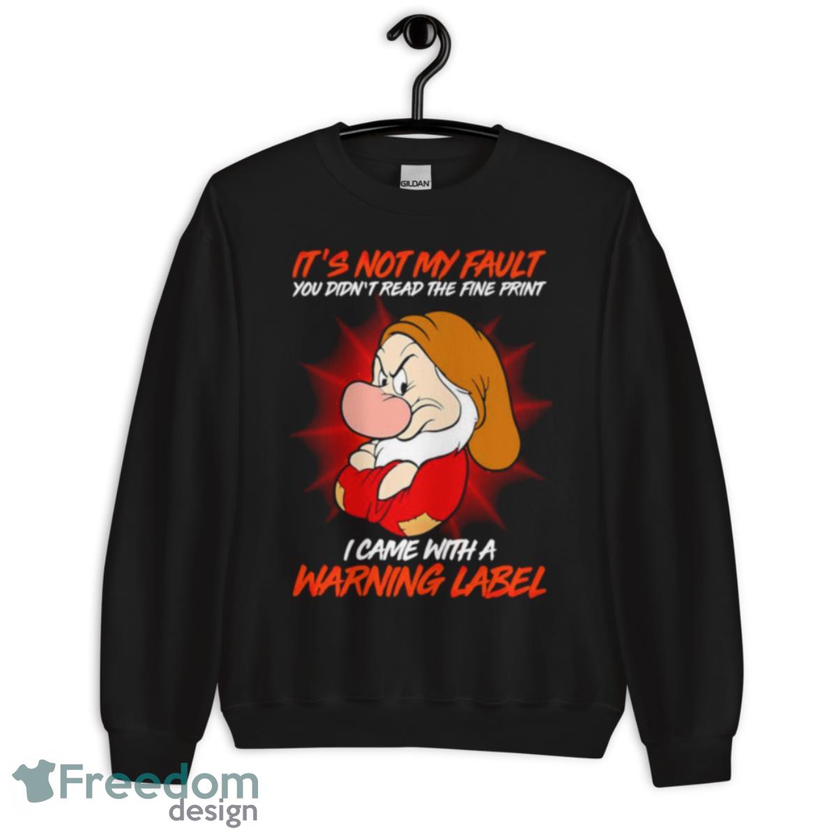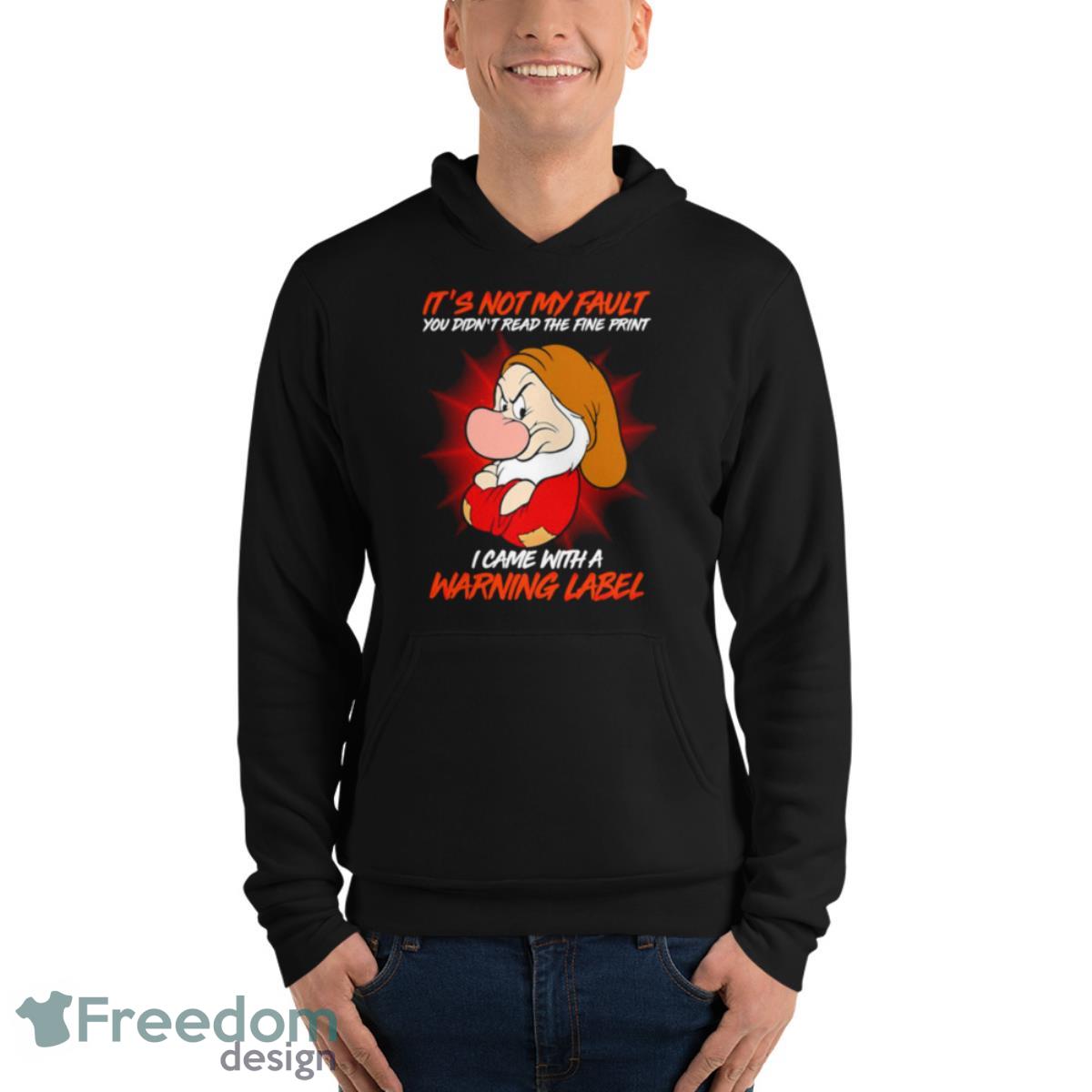 Disney Grumpy It’s Not My Fault Warning Label Shirt Details