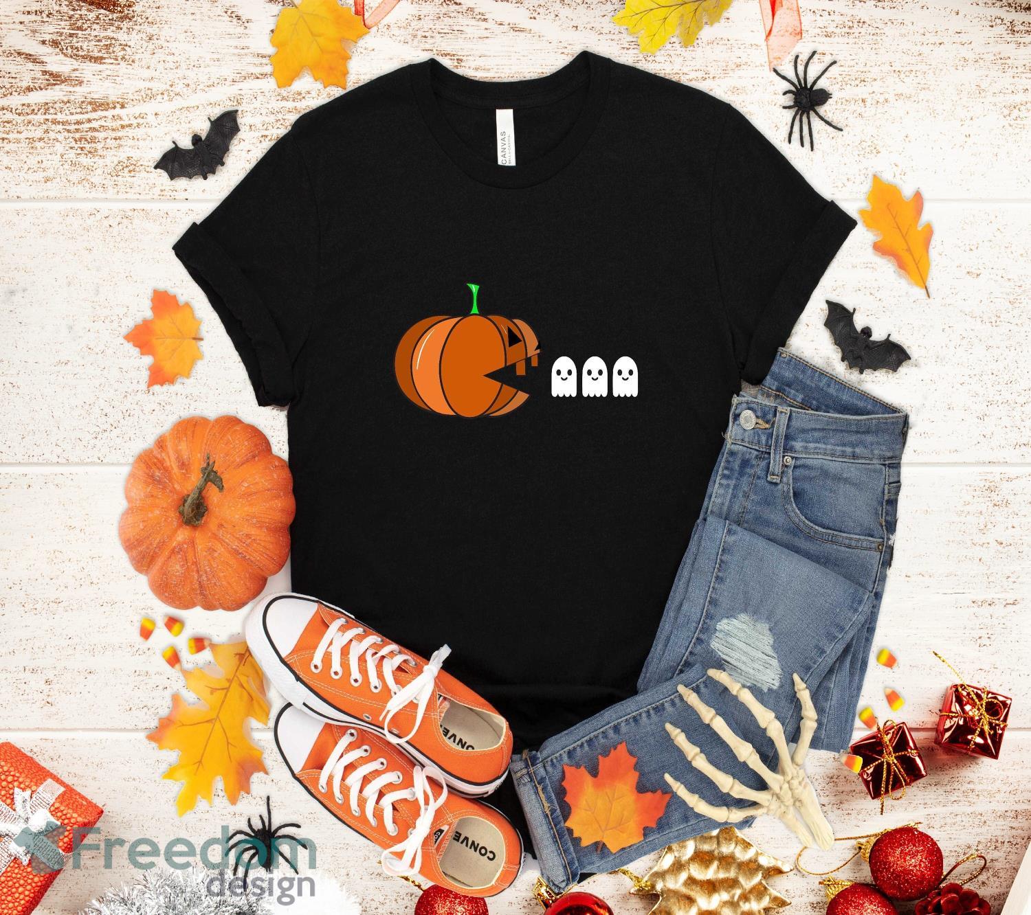Funny Halloween Pumpkin Eating Ghost, Gamer Men Women Kids T-Shirt Halloween Gift