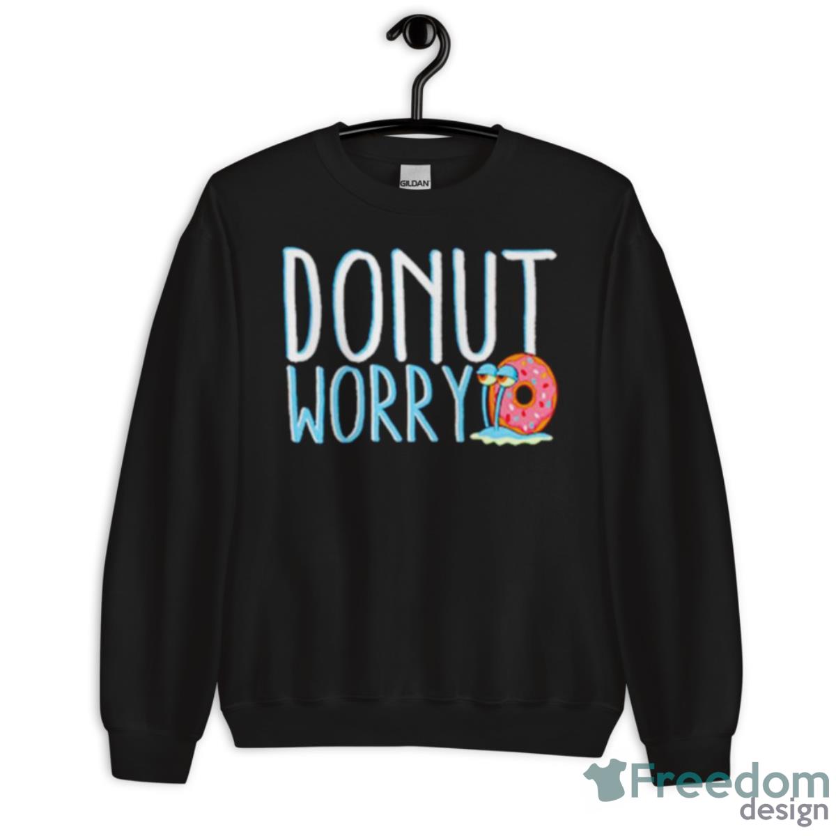 Crafted with high-quality materials, this shirt boasts a comfortable fit that is perfect for long wear. The bold graphic on the front features Spongebob’s pet snail Gary holding a donut with the words “Donut Worry” written in a fun and playful font. The bright colors and eye-catching design will make you stand out in any crowd.