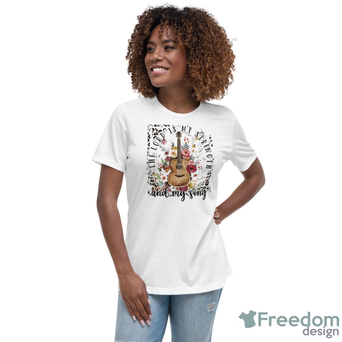 The Guitar The Lord Is My Strength And My Song Shirt is a stunning piece of clothing that is perfect for any music lover or devout Christian. With its bold and eye-catching design, this shirt is sure to turn heads and start conversations wherever you go.