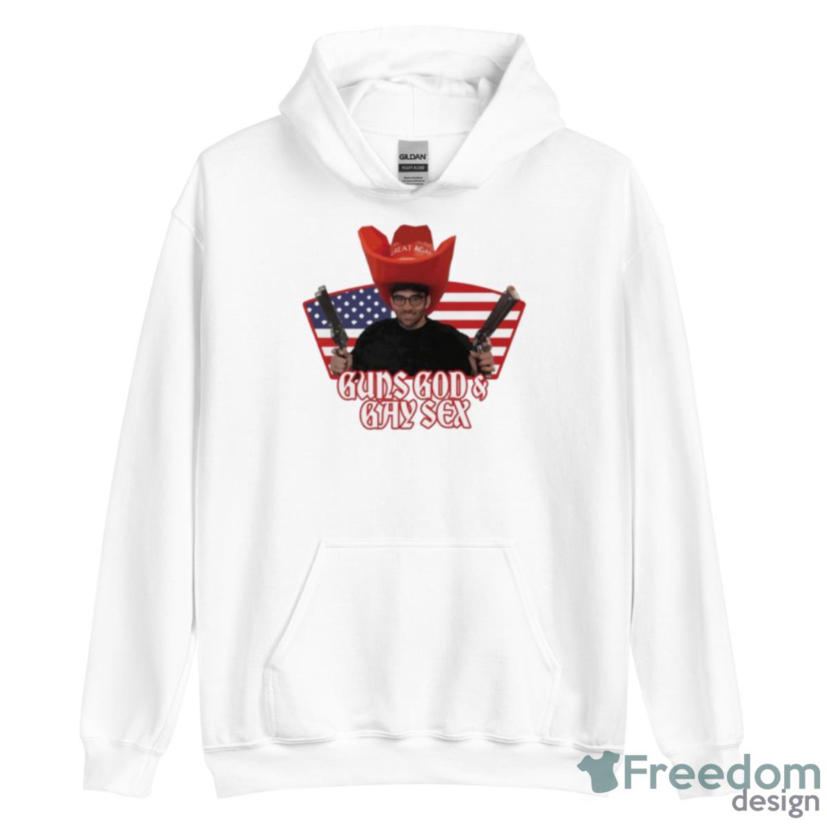 Whether you’re looking to make a bold statement or simply add a unique piece to your wardrobe, this Guns God And Gay Sex Shirt is the perfect choice. It’s a powerful symbol of your individuality, and a stylish way to show the world who you are. So why wait? Order yours today and start making a statement with your fashion choices!