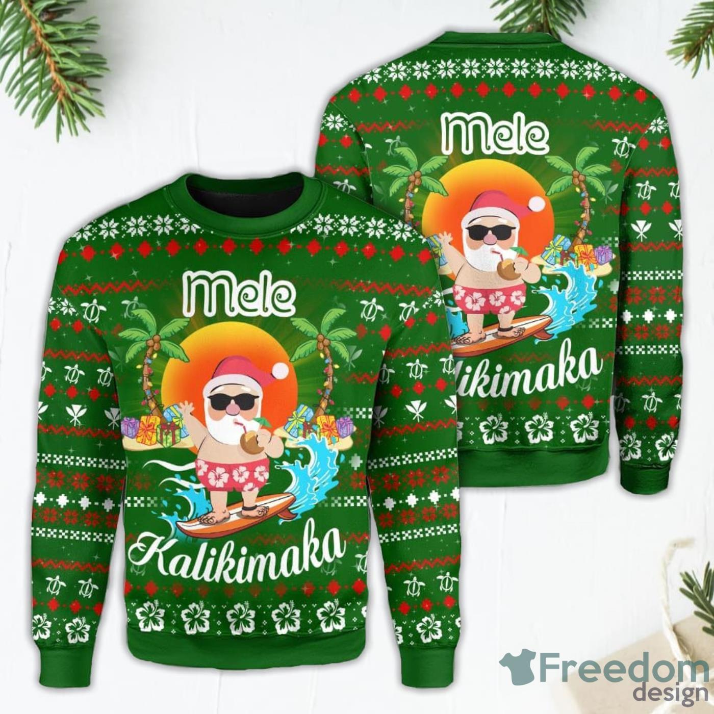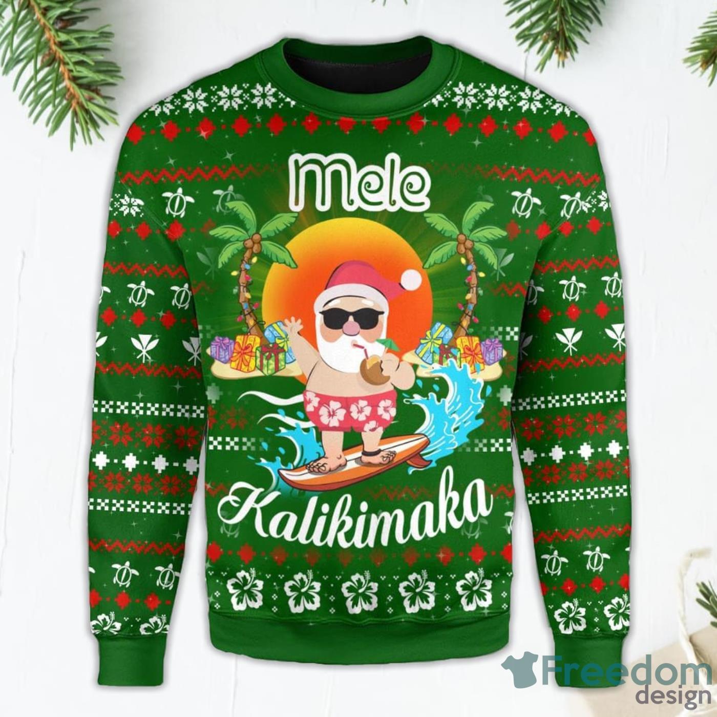 Hawaiian Santa Claus Mele Kalikimaka Sunset Ugly Christmas Sweater Informations:
