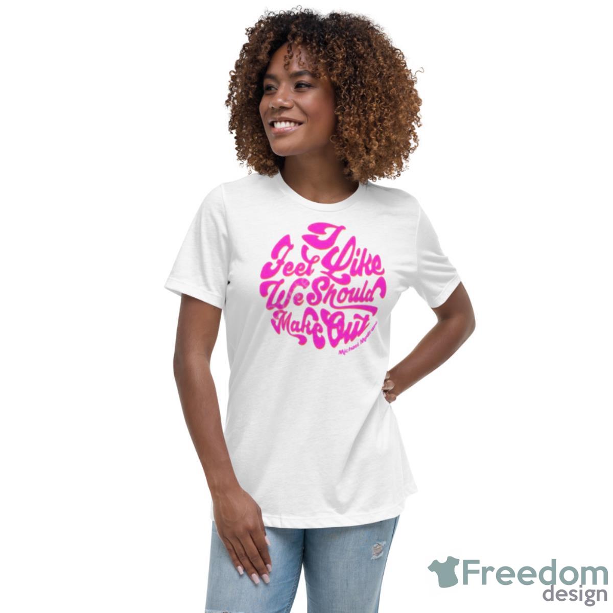 Crafted from high-quality materials, this shirt is both soft and comfortable to wear, making it perfect for all-day wear. The design features an eye-catching graphic that reads “I Feel Like We Should Make Out” in bold, playful letters, sure to catch the attention of anyone who sees it.