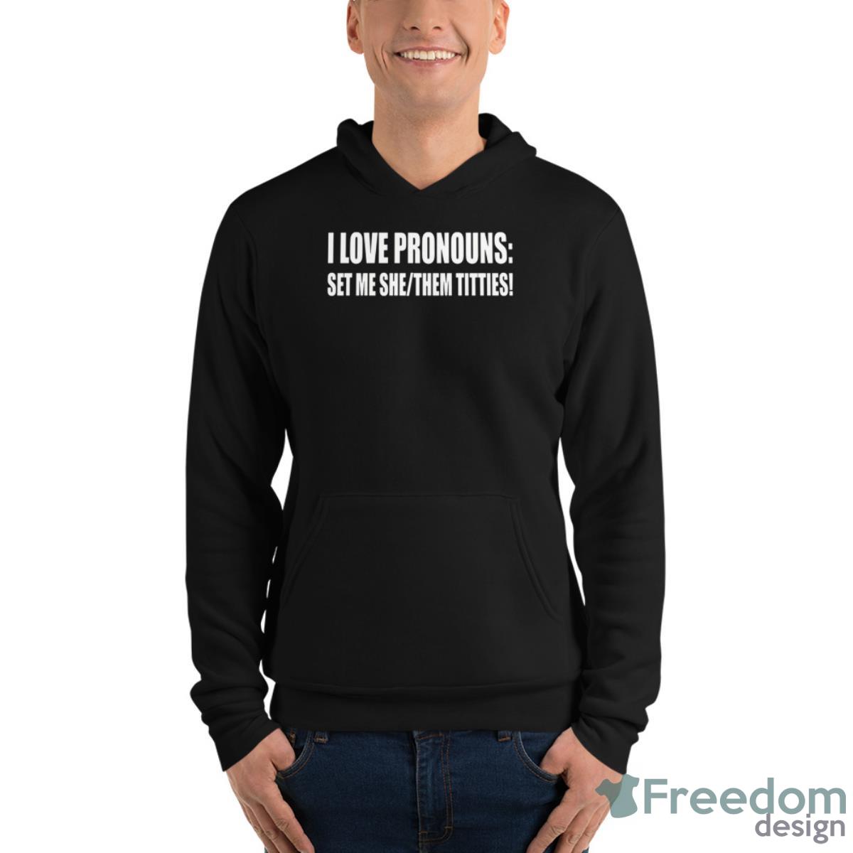I Love Pronouns Set Me She Them Titties Shirt Details