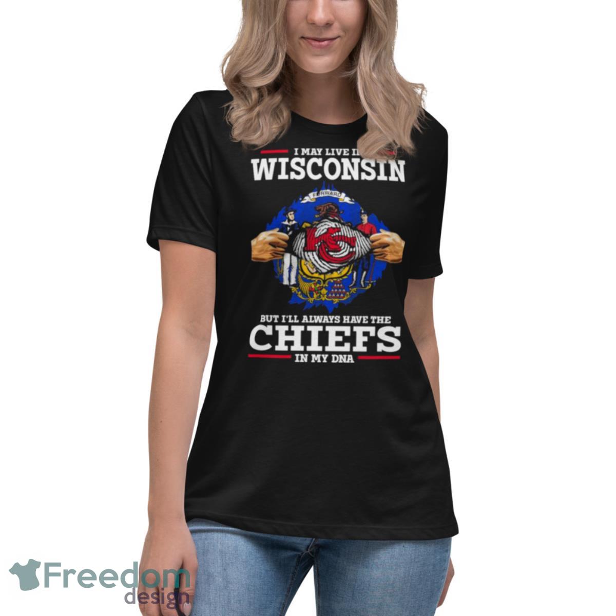Get ready to show your love for the Kansas City Chiefs with our exclusive “I May Live In Wisconsin But I’ll Always Have The Kansas City Chiefs In My DNA Shirt”. This shirt is perfect for any true fan of the Chiefs who lives in Wisconsin or anywhere else in the world. Made with high-quality materials, this shirt is comfortable, durable, and perfect for game day or any occasion. With its bold and eye-catching design, this shirt is sure to turn heads and make a statement wherever you go. So why wait? Get your “I May Live In Wisconsin But I’ll Always Have The Kansas City Chiefs In My DNA Shirt” today and show your love for the Chiefs in style!