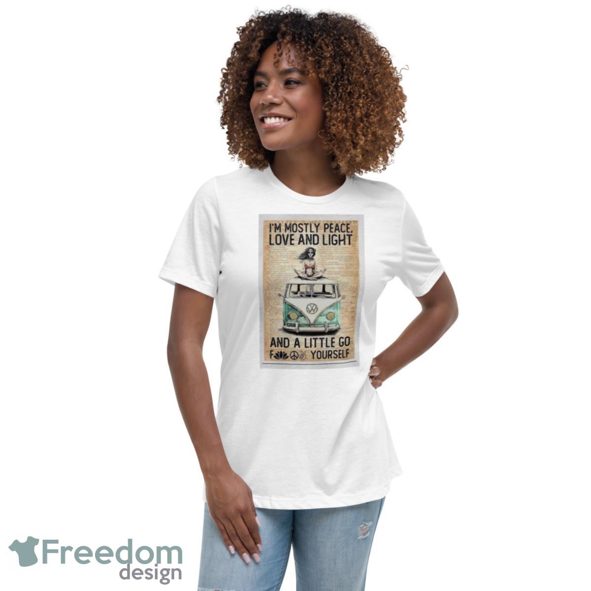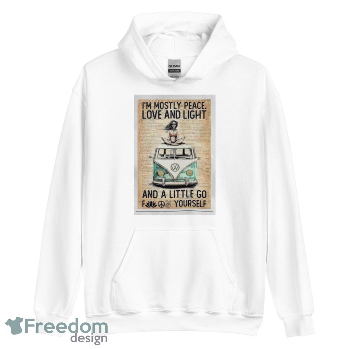 Order your very own I’m Mostly Peace Love And Light And A Little Go Fuck Yourself Shirt today and express your individual style in a unique and bold way!