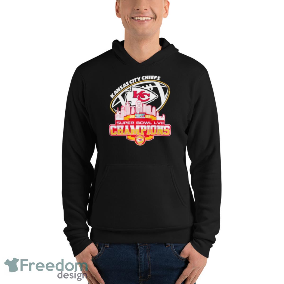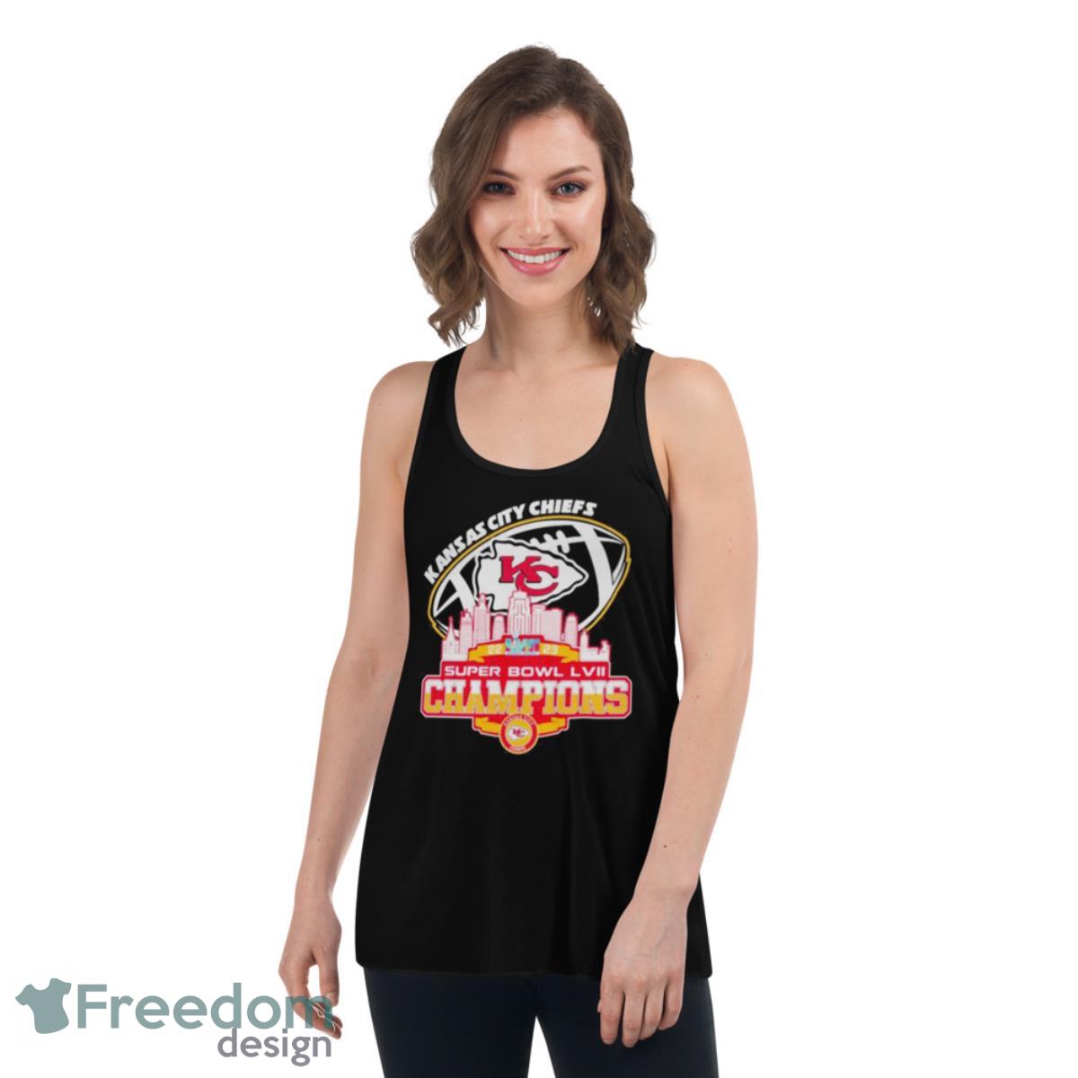 This shirt is emblazoned with the Chiefs logo in the center, as well as the words “Super Bowl LVII Champions” in a bold, proud font. Plus, the shirt also features a skyline of Kansas City in the background, letting everyone know where your allegiances lie. It’s the perfect way to show your love for the Chiefs while also getting hyped for next season!