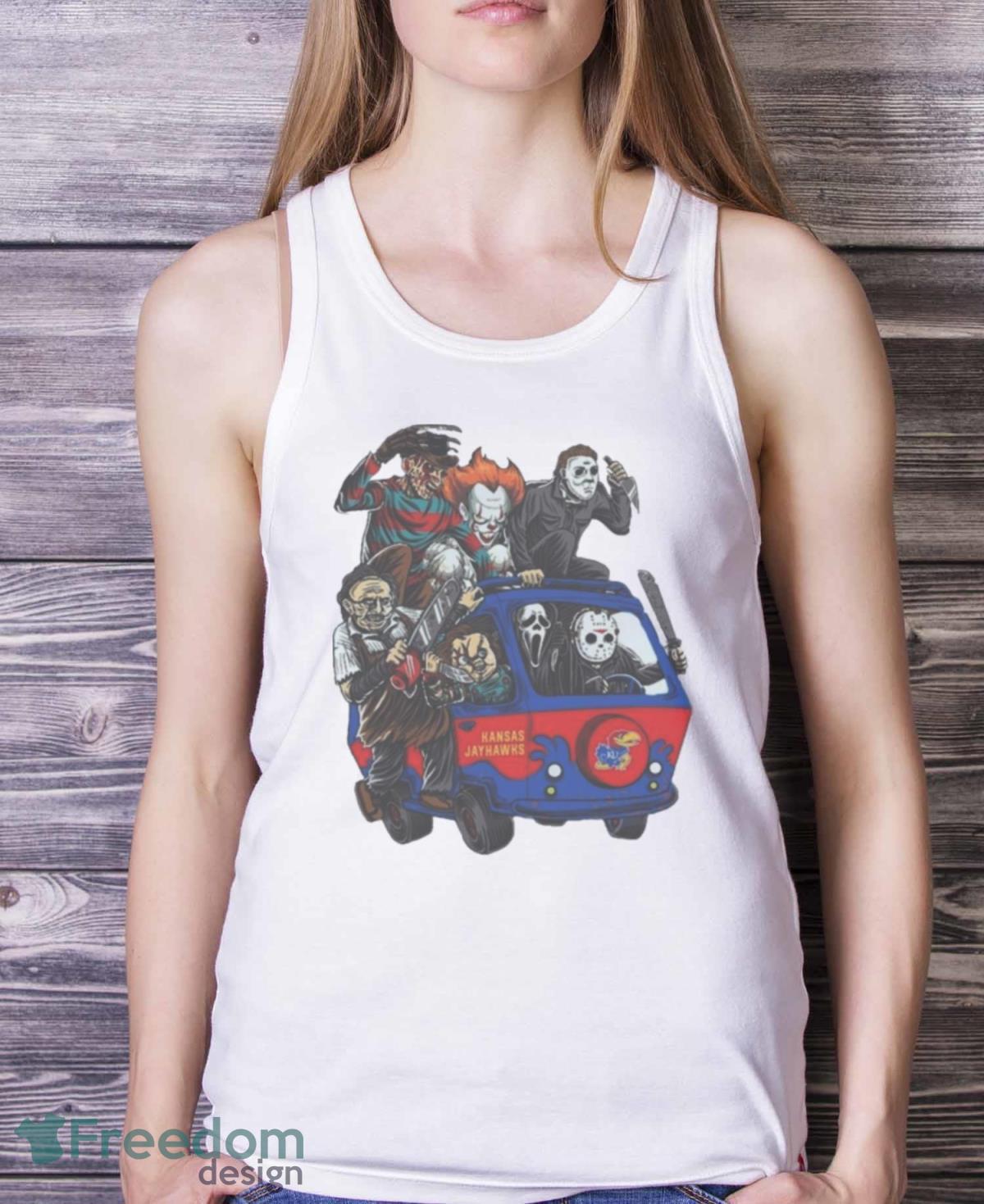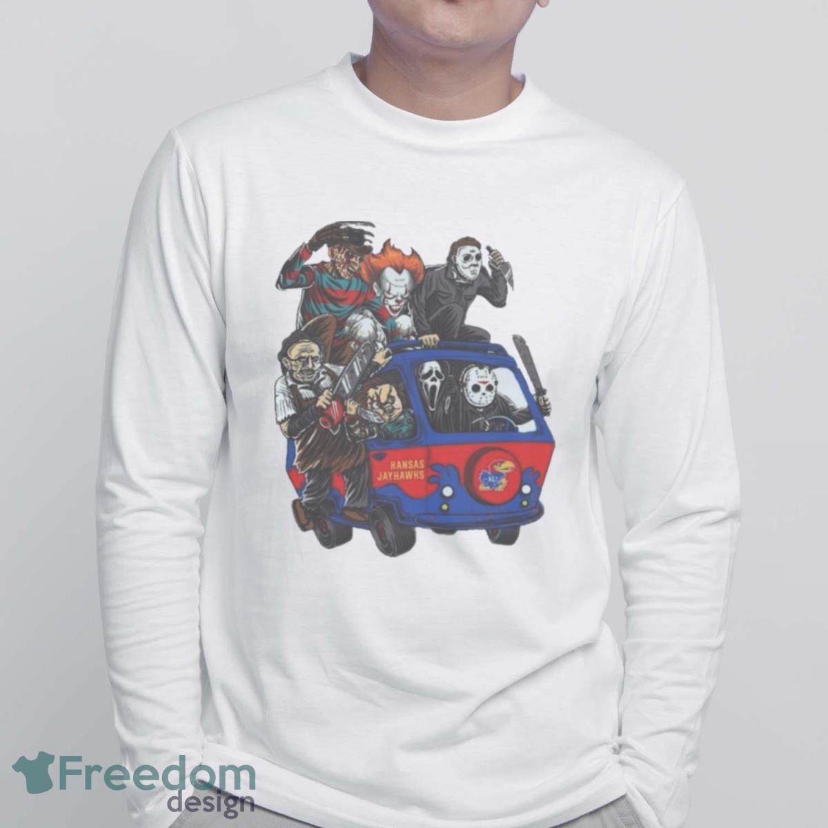 Kansas Jayhawks Horror Movies Characters Bus Halloween 2023 T Shirt Details
