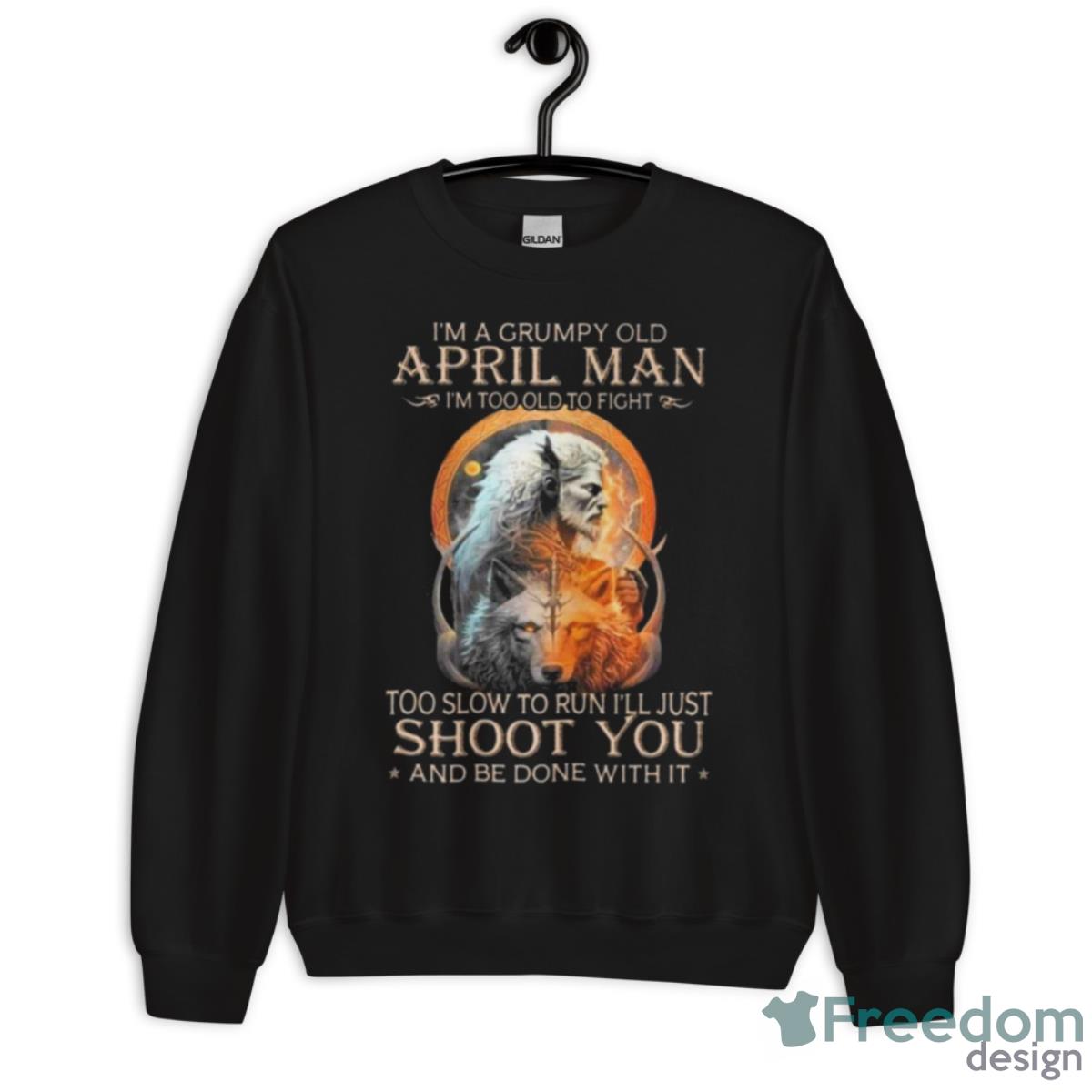 Some of the King Wolf I’m A Grumpy Old April Man I’m Too Old To Fight Too Slow To Run I’ll Just Shoot You And Be Done With It Shirt photos