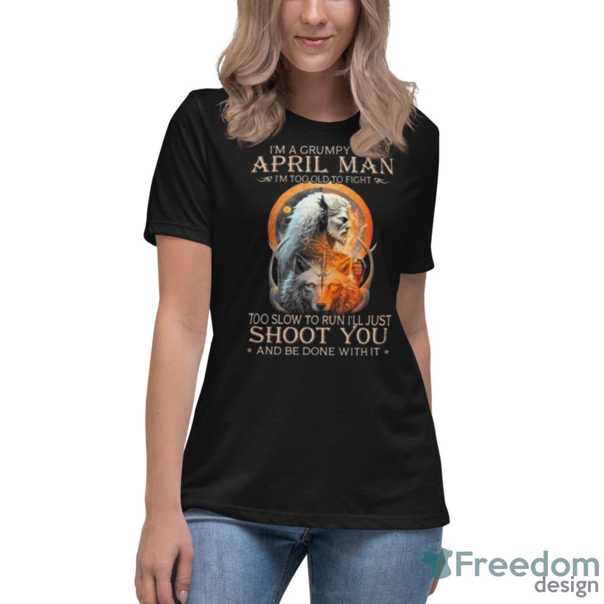 The King Wolf I’m A Grumpy Old April Man I’m Too Old To Fight Too Slow To Run I’ll Just Shoot You And Be Done With It Shirt is not just a fashion statement, it’s a statement of your unique personality. It’s perfect for anyone who’s not afraid to speak their mind and stand up for what they believe in.