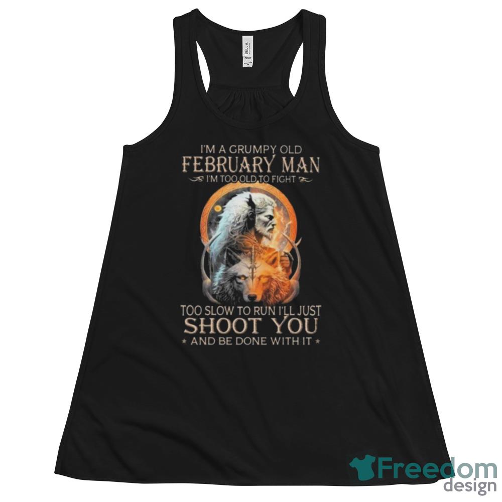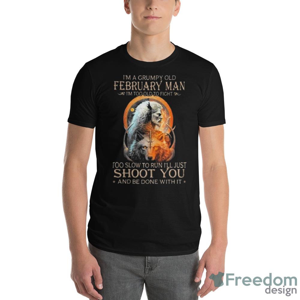 Some of the King Wolf I’m A Grumpy Old February Man I’m Too Old To Fight Too Slow To Run I’ll Just Shoot You And Be Done With It Shirt photos