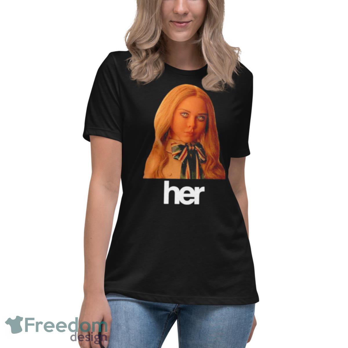 Looking for a shirt that will make you look and feel your best? Check out the M3GAN her shirt. This shirt is designed to fit your curves and flatter your figure. Made from a soft and stretchy fabric, the M3GAN her shirt will keep you comfortable all day long. The shirt also features a V-neckline and a fun print that will make you stand out from the crowd.