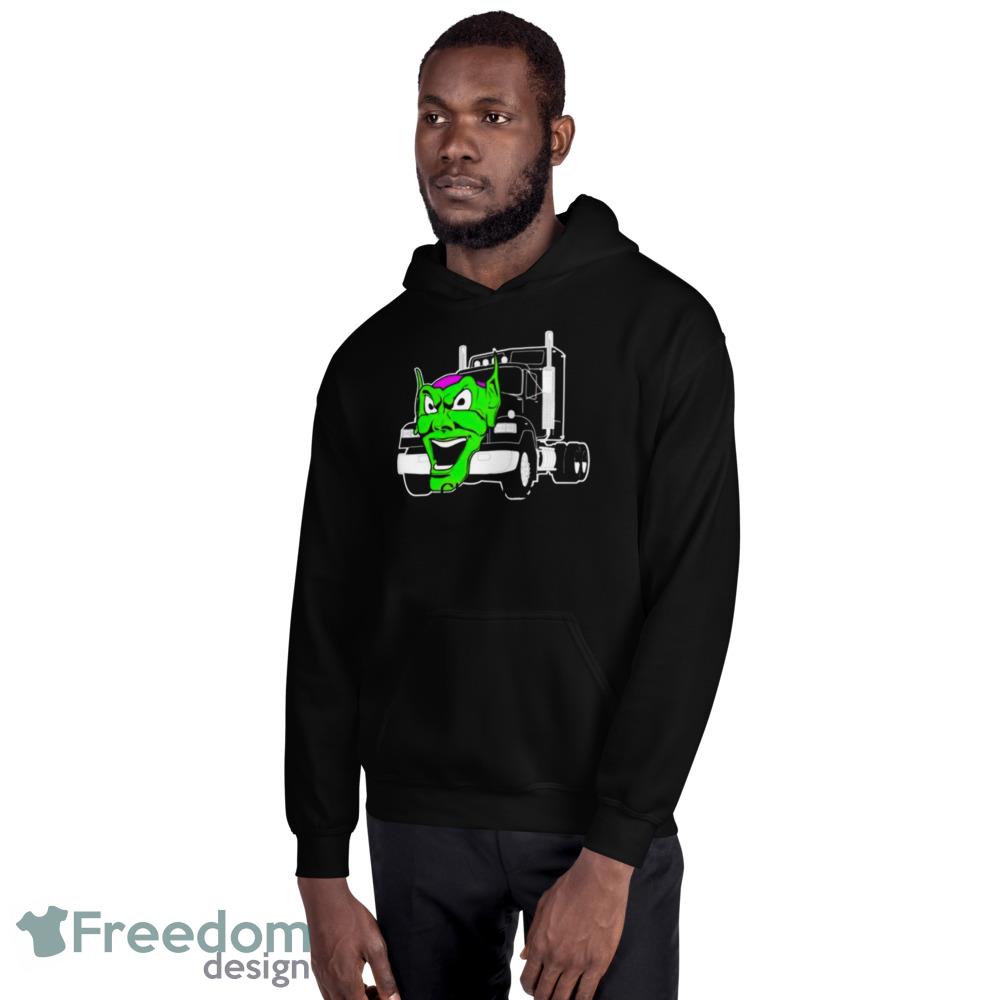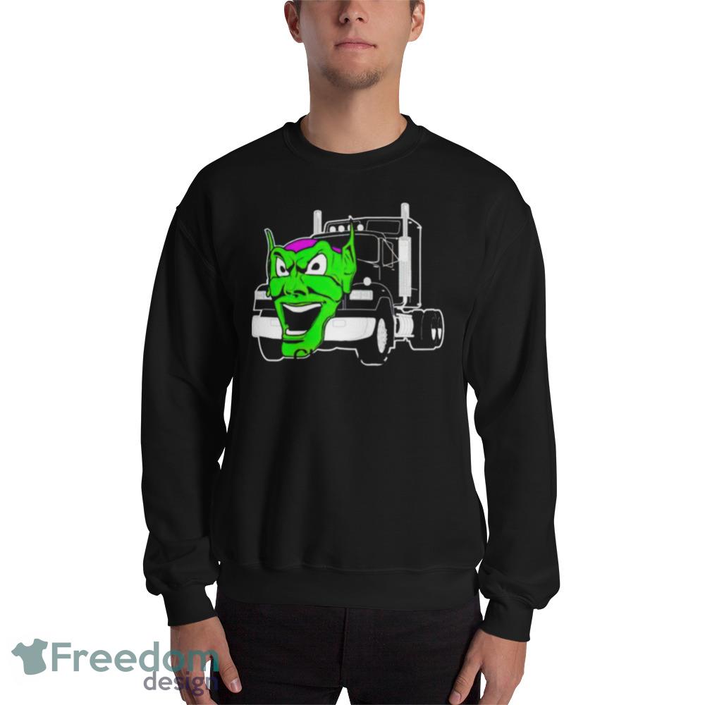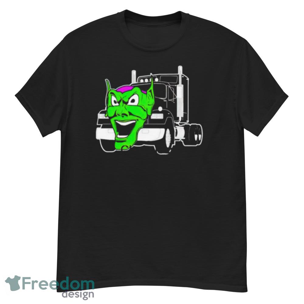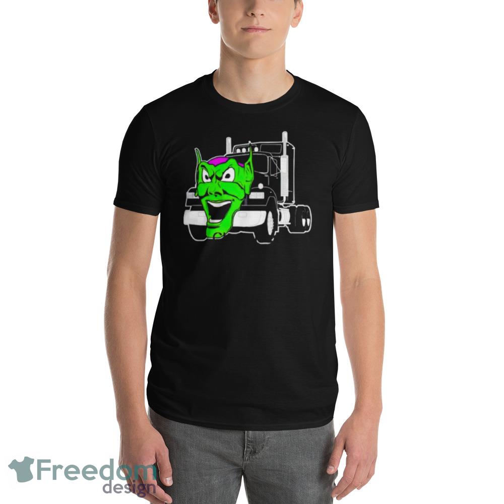 Crafted from high-quality cotton, the Maximum Overdrive Truck Movie Black T Shirt Mockup is soft and comfortable, making it perfect for everyday wear. The design is bold and vivid, with the striking image of the Green Goblin truck emblazoned on the front. The black background perfectly highlights the bright colors of the design, making it truly stand out.