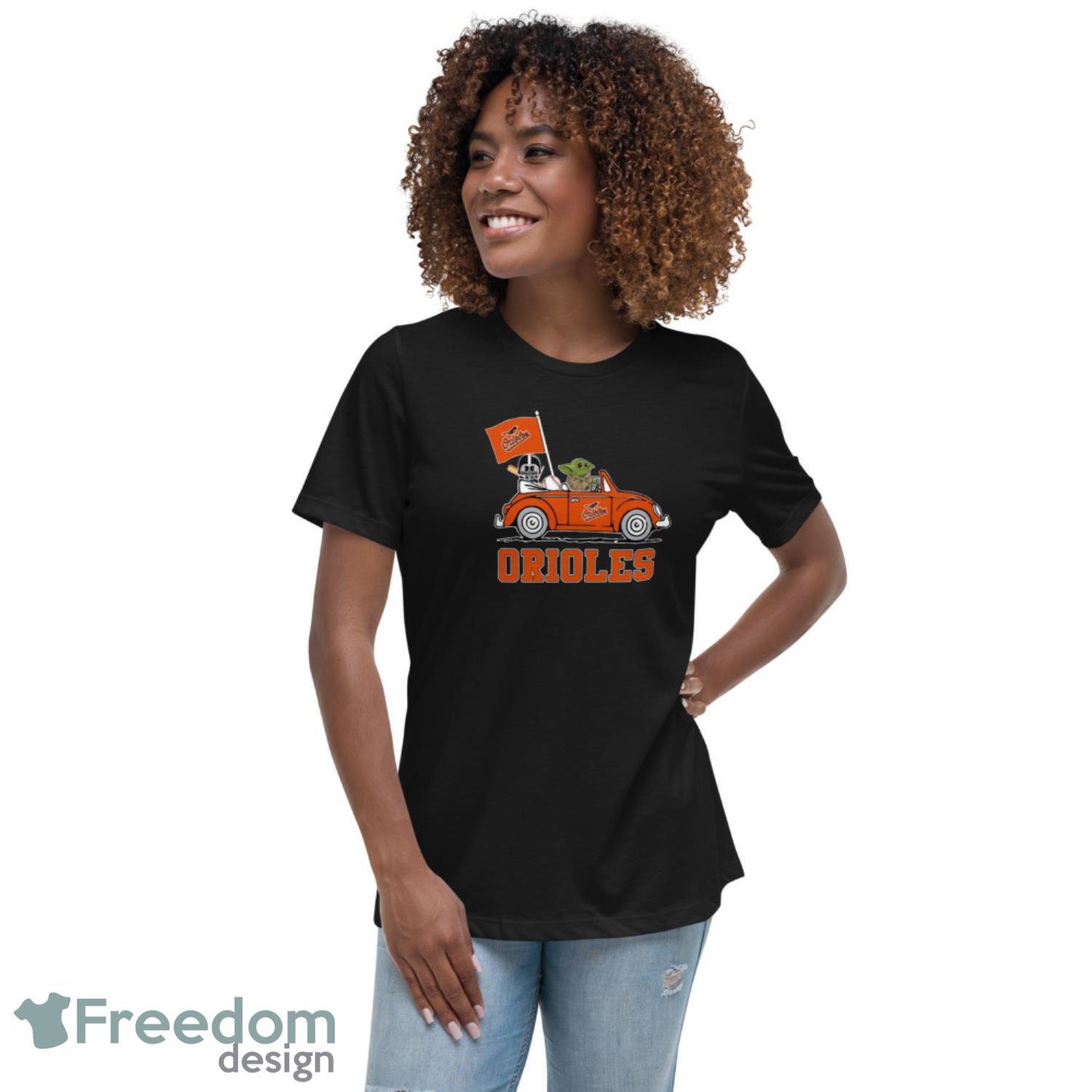 MLB Baseball Baltimore Orioles Darth Vader Baby Yoda Driving Star Wars Shirt T Shirt Details