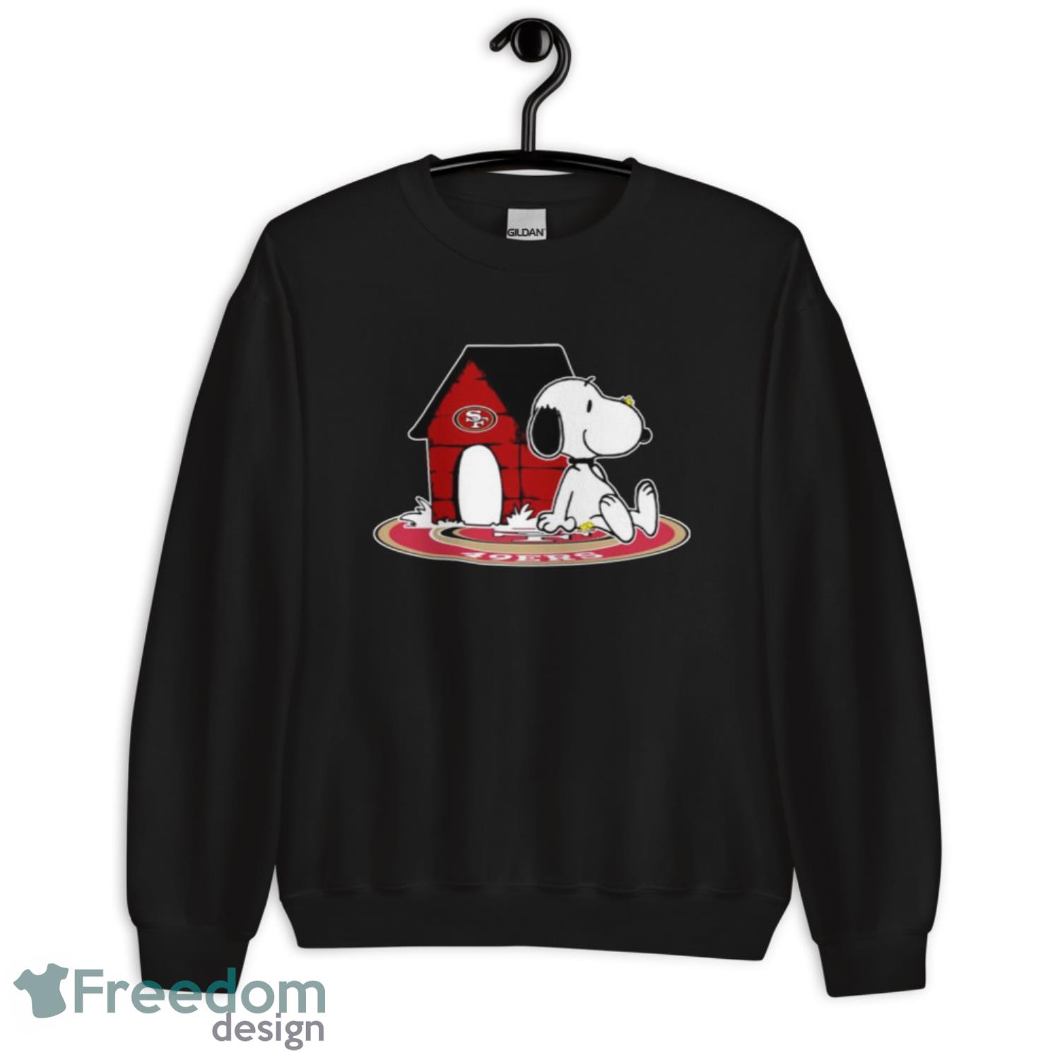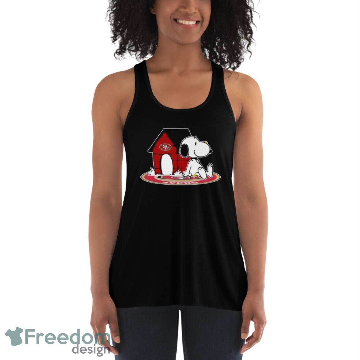 Featuring Snoopy, the lovable beagle from the Peanuts gang, this shirt combines your favorite football team with classic Charlie Brown charm. The iconic 49ers logo is proudly displayed alongside Snoopy, creating a unique and eye-catching design that will surely turn heads.