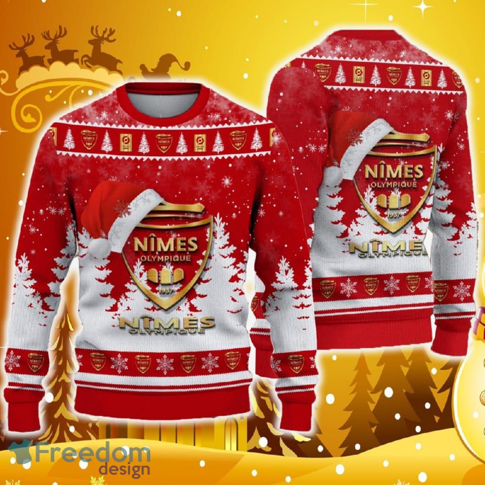 Nimes Olympique Ugly Christmas Sweater Santa Hat Logo Tree Gift For Men And Women
