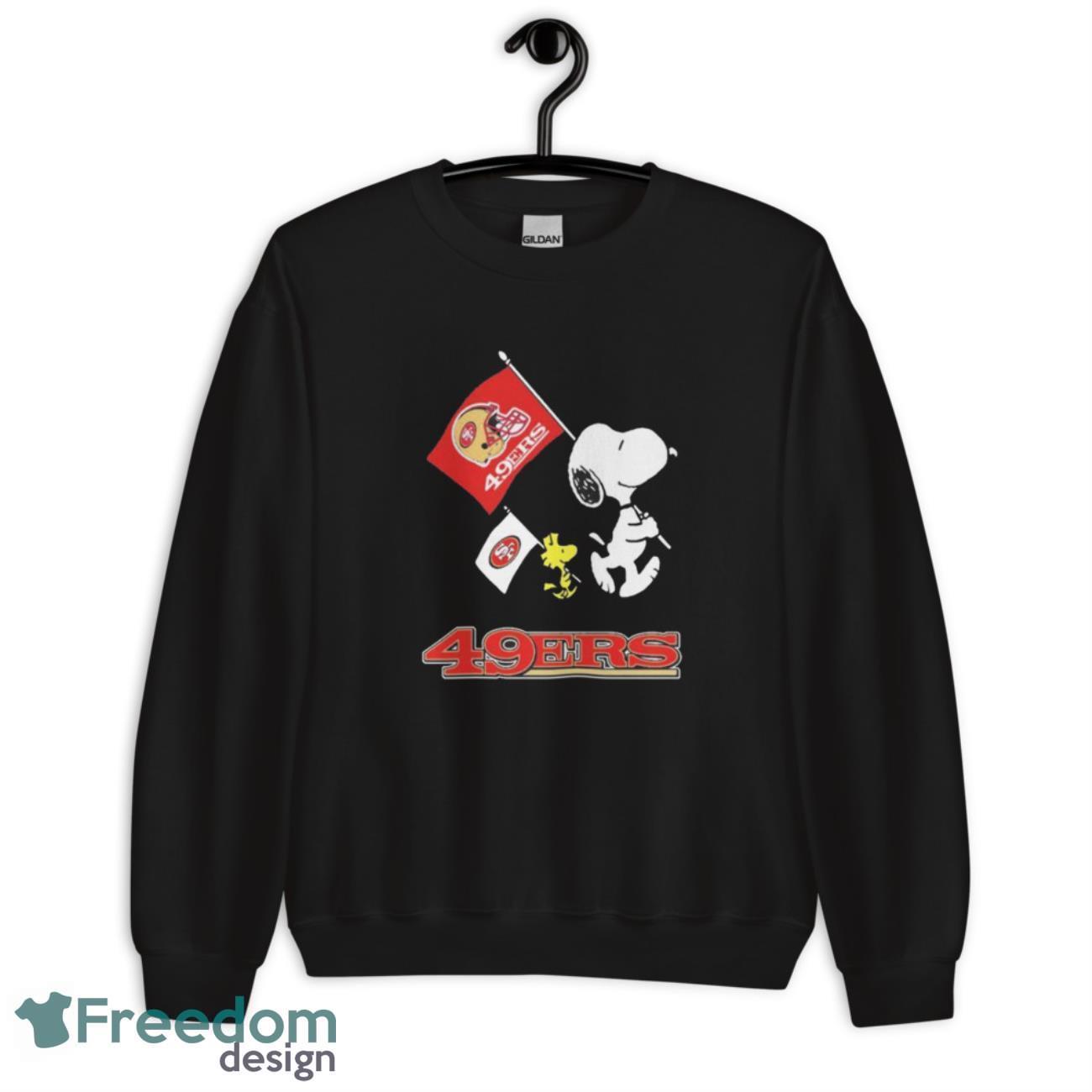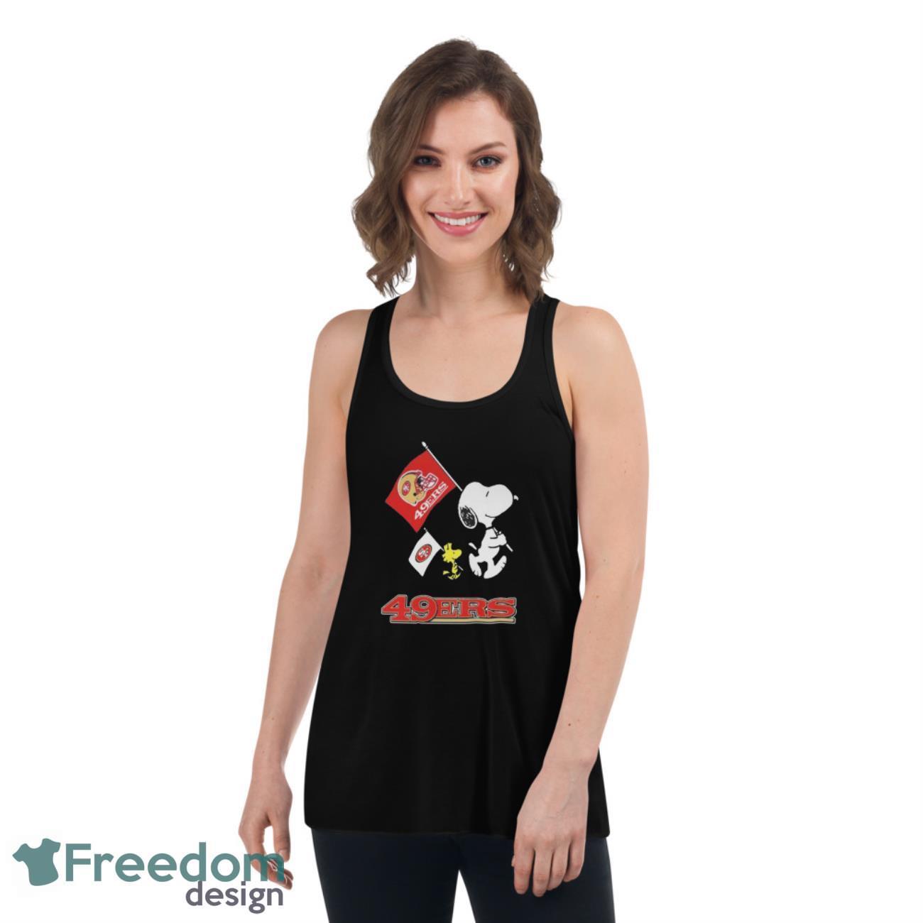 Official The Peanuts Snoopy And Woodstock San Francisco 49ers Football Flag Shirt Details