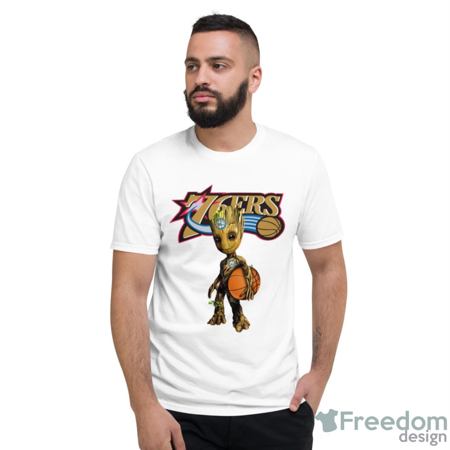 Philadelphia 76ers NBA Basketball Groot Marvel Guardians Of The Galaxy T Shirt Details