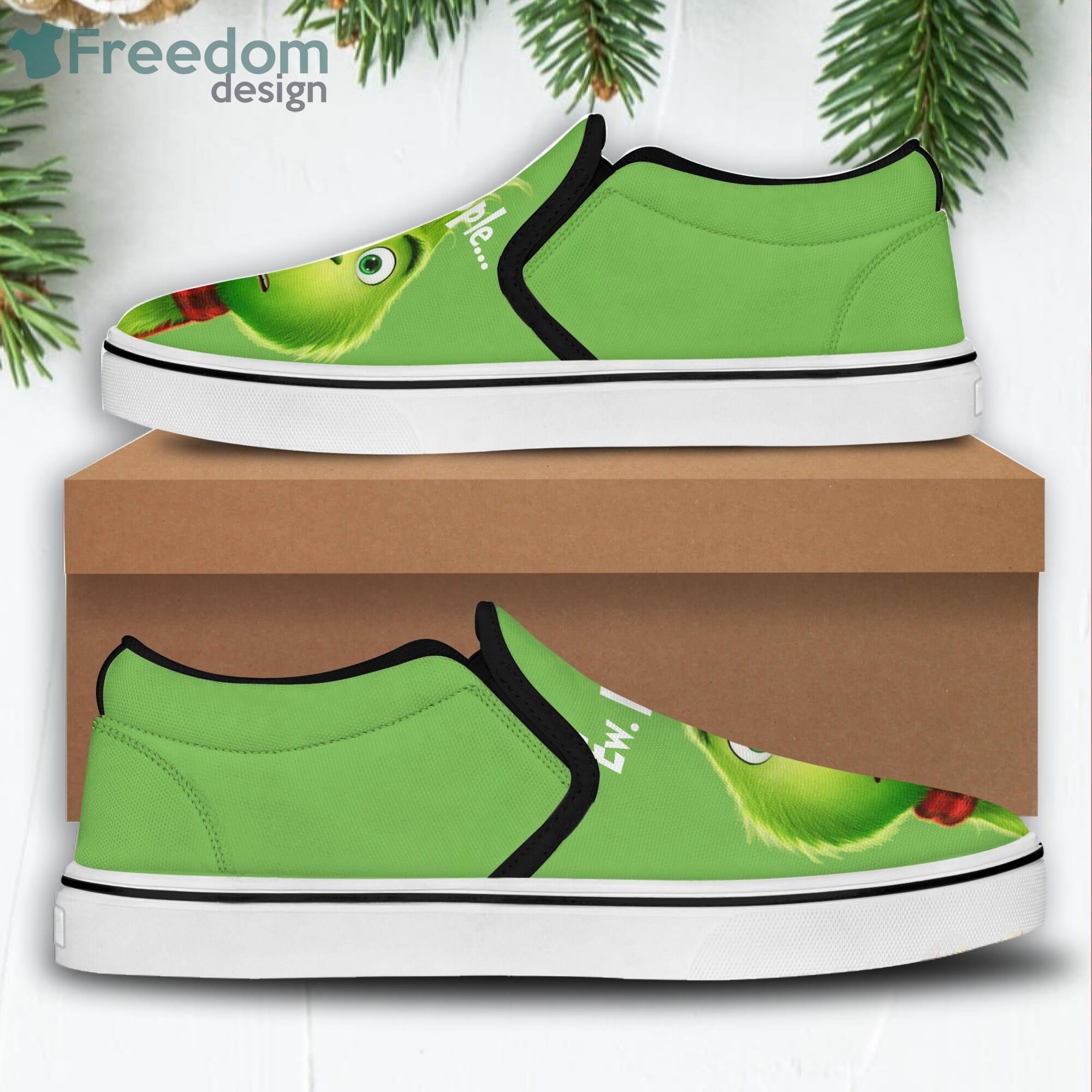 Do you hate how your shoes always seem to get dirty and grimy? Keep your shoes clean and fresh with the Grinch Green Canvas Shoes! These funny ew people slip on shoes are perfect for anyone who wants to keep their footwear looking sharp. Made from durable canvas, these shoes will hold up against wear and tear, so you can wear them everywhere without worrying about spills or scratches. Plus, the Grinch design is sure to get a laugh from your friends and family. So what are you waiting for? Order your Grinch Green Canvas Shoes today!