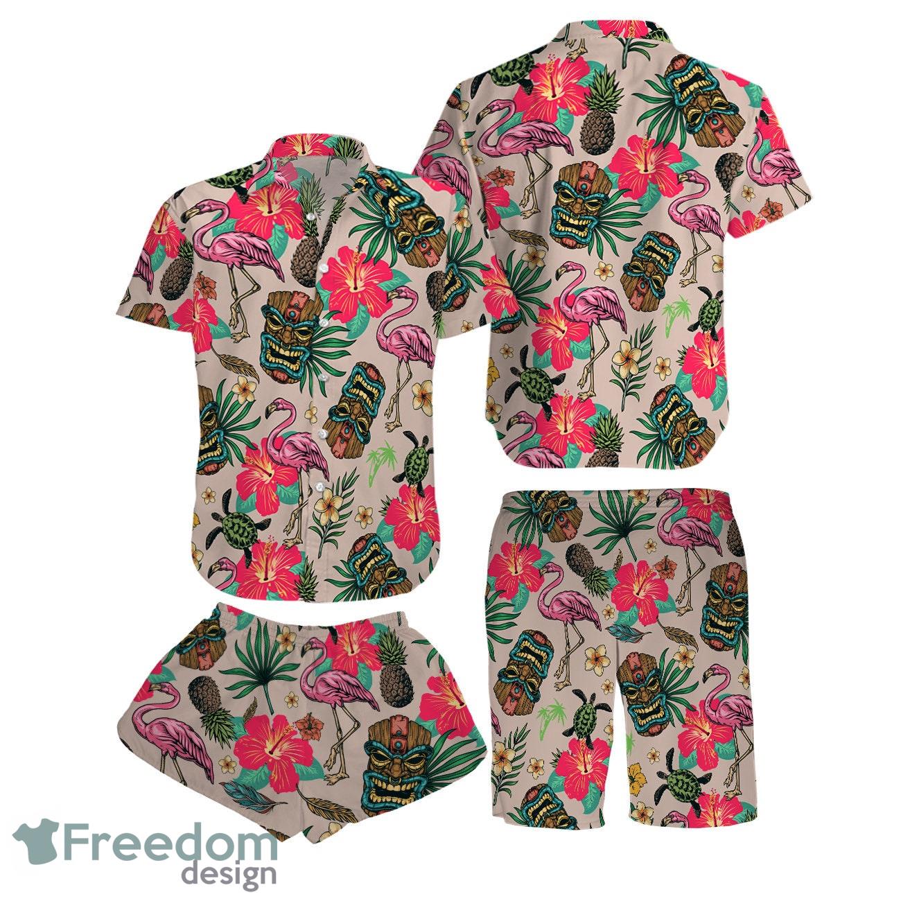 Some of the Tiki Flamingo Shorts, Funny Tiki Summer Hawaiian Shirt And Short photos