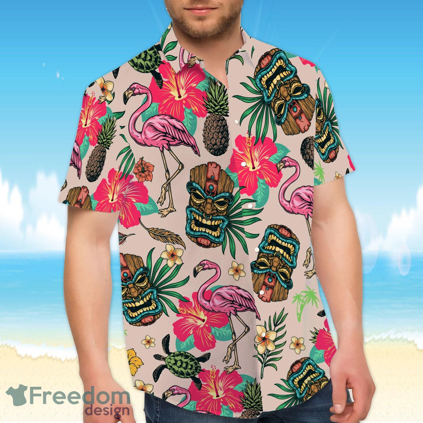 Tiki Flamingo Shorts, Funny Tiki Summer Hawaiian Shirt And Short Details: