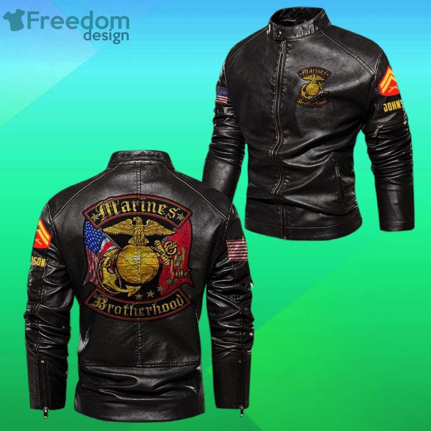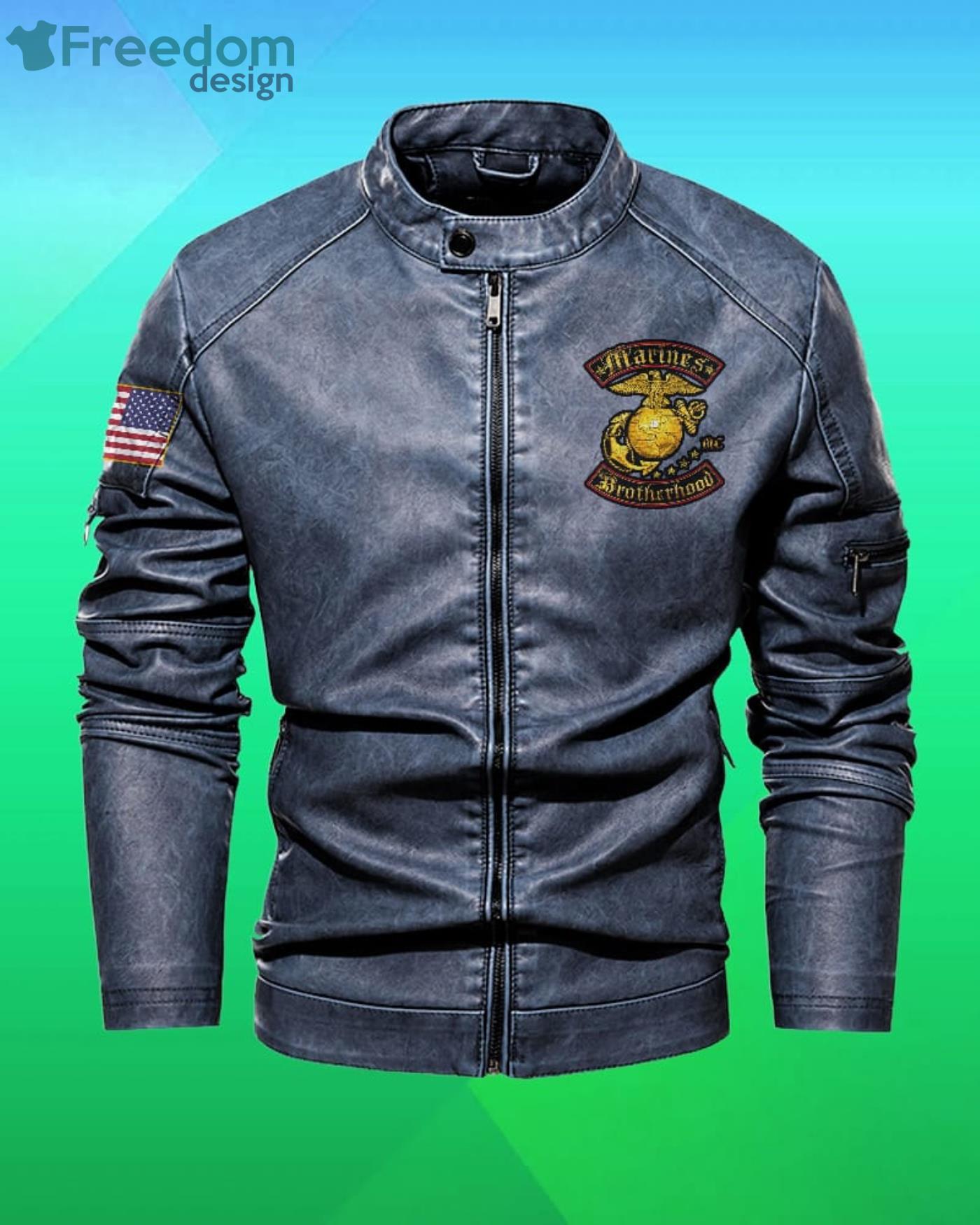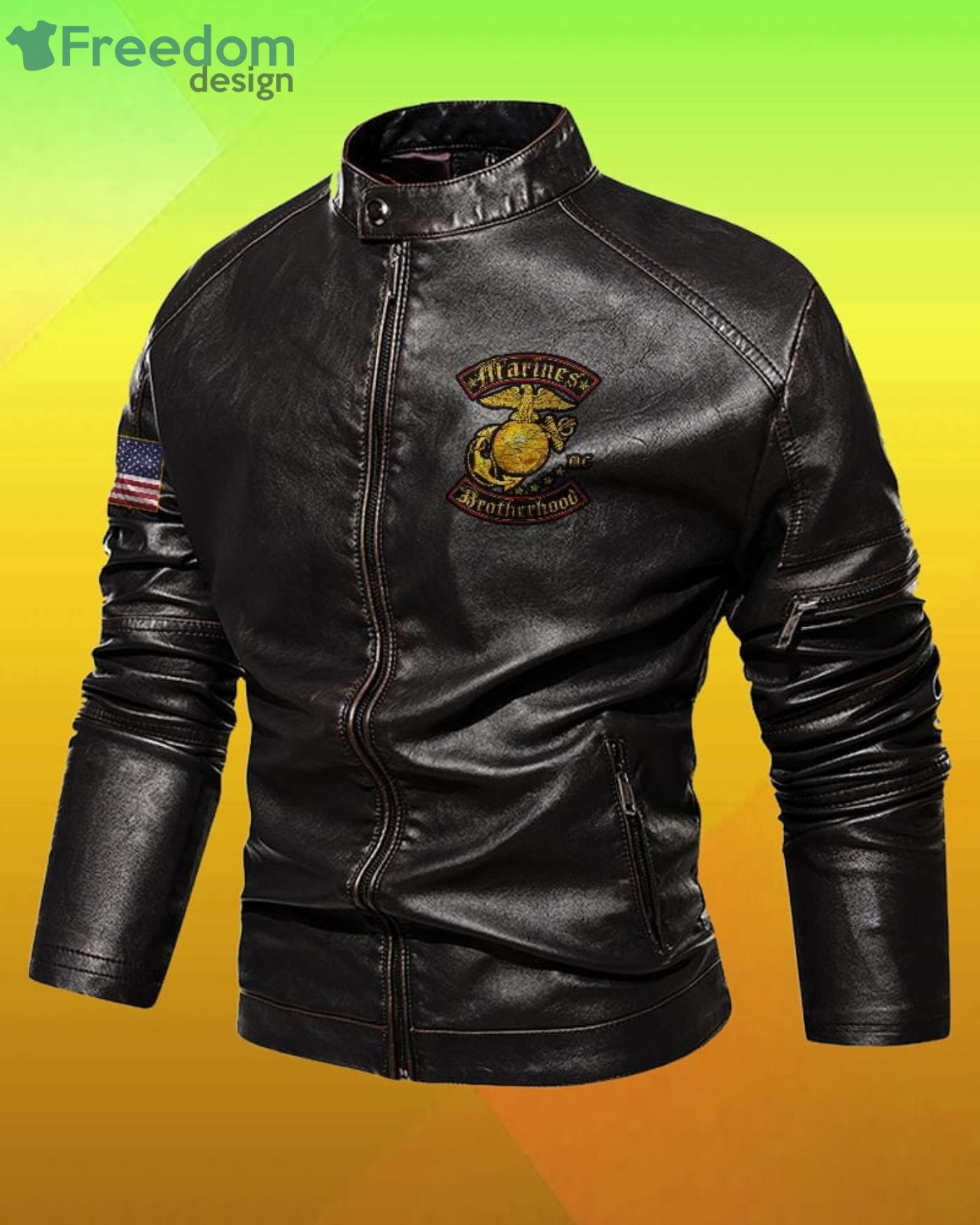 Some of the Us Marines Corps Brotherhood Double Flag Motor Leather Jacket photos