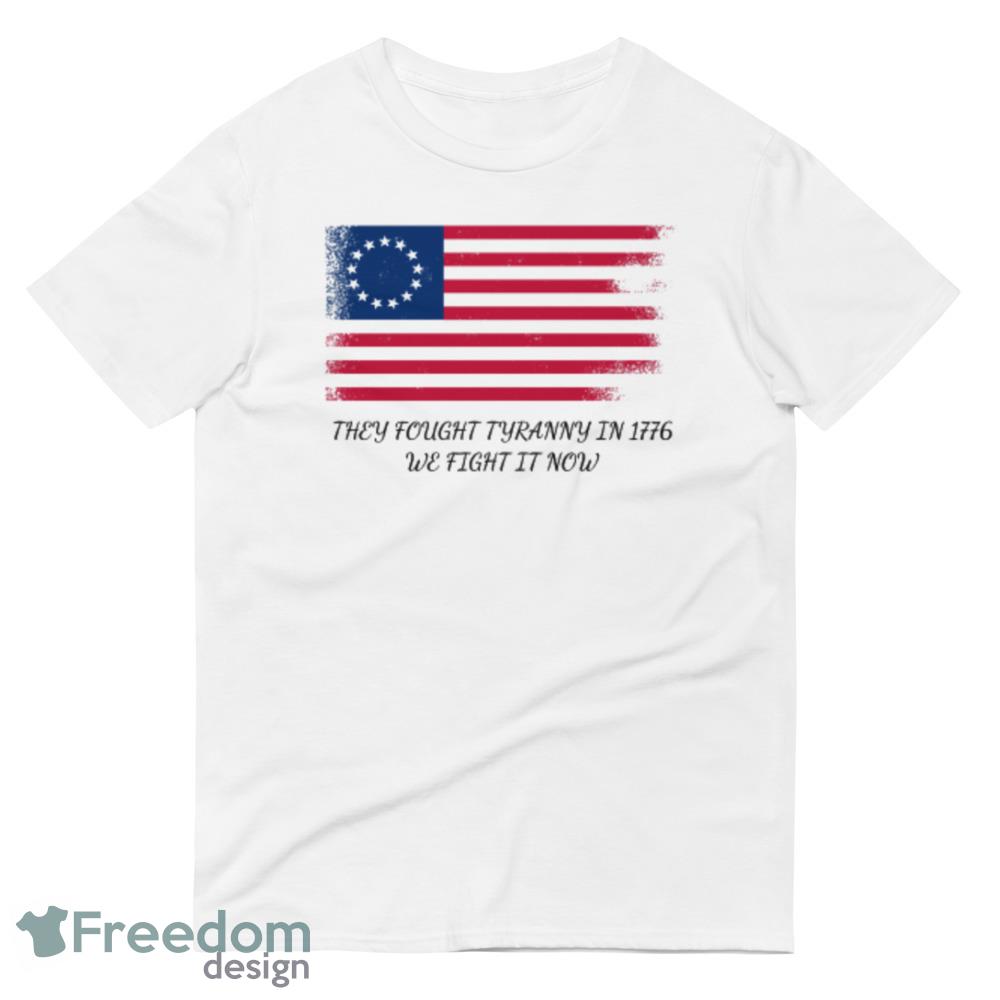 We fight tyranny! Funny White T Shirt Details